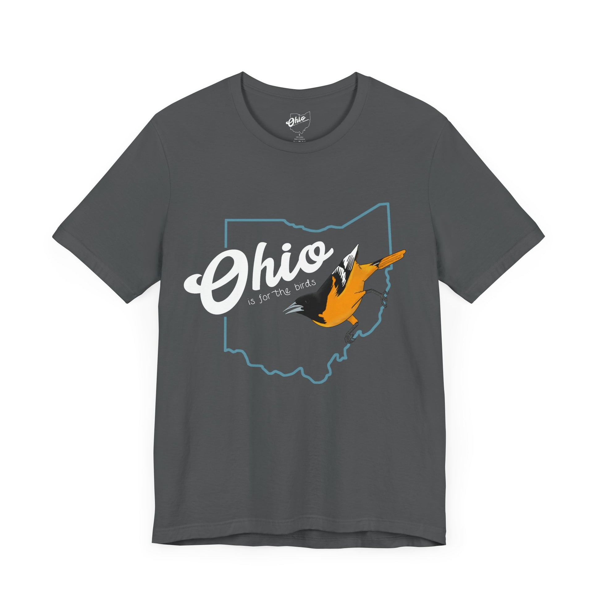 Ohio isn’t just a place — it’s a migratory crossroads. Featuring the bright and bold Baltimore Oriole perched along the state lines, this tee celebrates Ohio’s status as the birding capital of the world. From warblers to waterfowl, the Buckeye State hosts hundreds of species each year — making it a top destination for birders... and for those who still claim it exists.